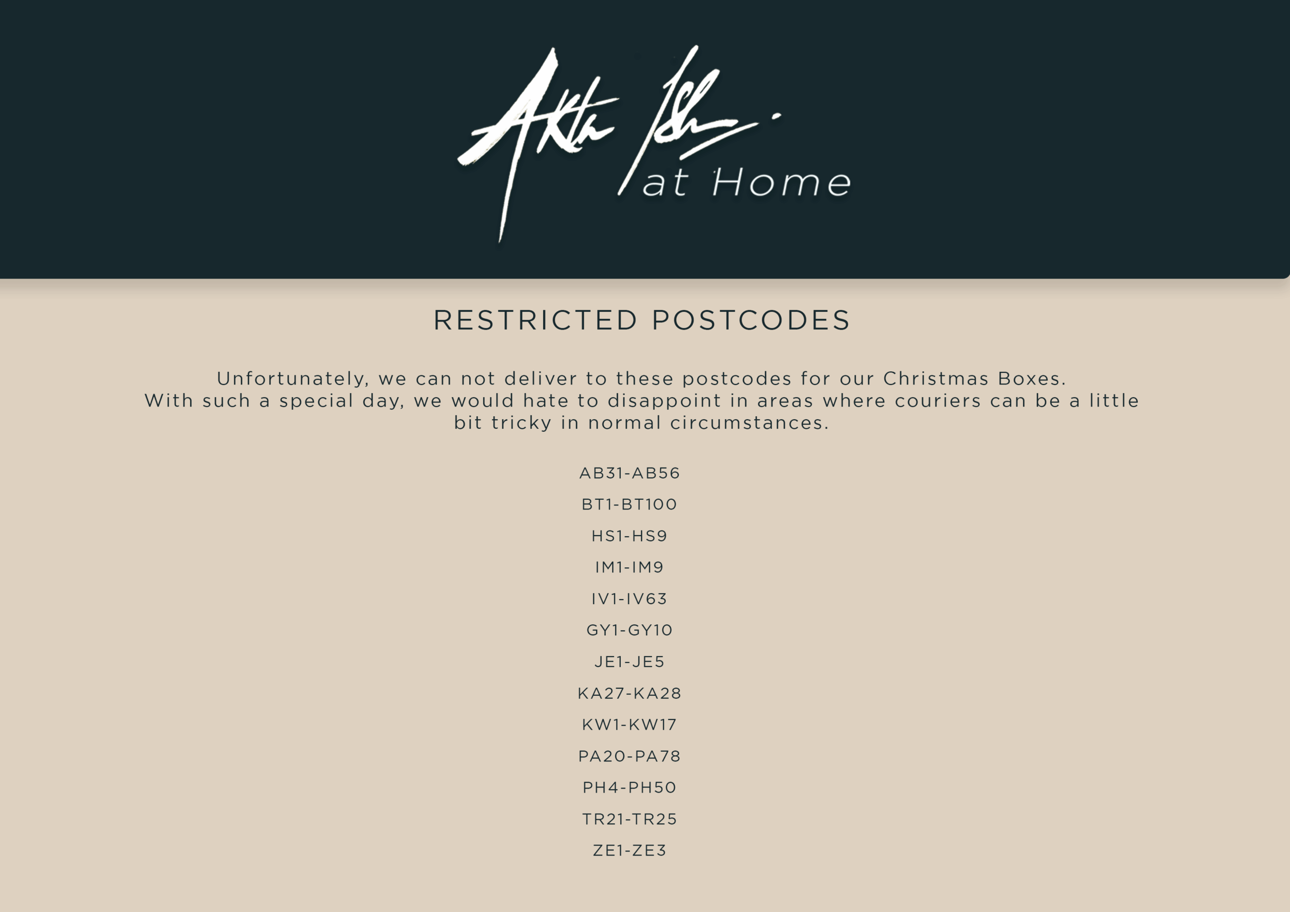We will only be delivering this box on the 23rd December 2025. Please ensure your address is completely accurate and unfortunately there is a list of postcodes we are unable to deliver to that you can find HERE.