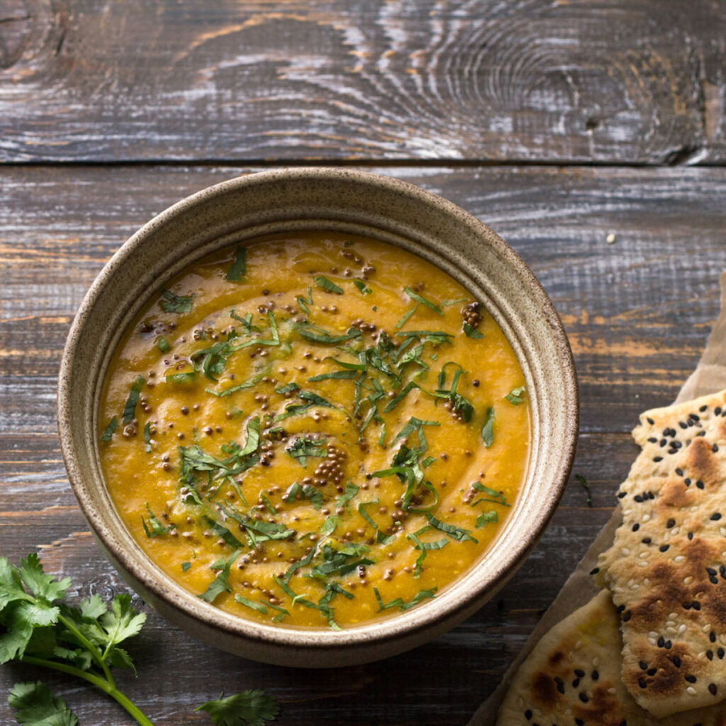 Yellow lentils spiced with cumin tempered with garlic, roasted chilli and curry leaves
